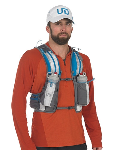 After running our first few races in an old Camelbak that I retained from my Air Force days, and tired of the way it flopped around on my back while running, I wanted to find a better fitting hydration pack.  I knew I wanted the pack to be small and light weight for sprint-style races (5-12 hours), but I also wanted it to be large enough to hold a few items such as a rain jacket, Clif Bars, Energy Gels, etc.  We recently bought my wife a Nathan Intensity Vest that she loves and I was intrigued by the running vest concept.  After looking on the internet for a while and reading plenty of reviews, I settled on the Ultimate Direction PB 2.0 Adventure Vest.  The reviews for the original Peter Bakwin Adventure Vest were very good and I knew that Ultimate Direction was coming out with the 2.0 version so I waited and waited until it became available.  And let me tell you, it was worth the wait.