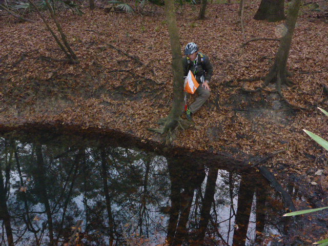 We carried on and picked up a few more CPs, running into a couple of teams along the way.  For CP55 we had already been warned to not use the tree to climb down into the cave because it’s rotted and will collapse.