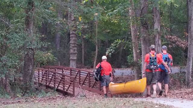 For CP21, we had to follow pink streamers down a small creek to locate a pond. But the creek ended up turning into nothing but a mucky “trail”, through which we portaged our canoes. And thank goodness we took our canoes because once we finally got to the pond, there was no way we were wading across a chest-deep pond in the middle of the night. Some teams did, but then some teams are just flippin’crazy!