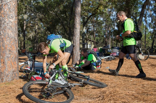 Not much to say on this section. I have little chicken legs and knew we wouldn’t be able to get many bike points, so we didn’t try. With the sugar sand trails that suck the life out of you, we knew we’d end up killing ourselves for just a few points when there were more to get on foot. Instead, we raced to get the first easy bike CP and then headed right back to the Main TA and transitioned to foot.
