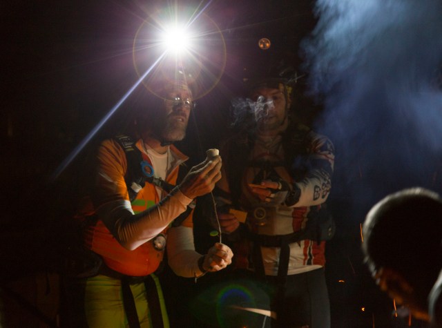 This section had 4 CPs that we had to get in order, and as much as we wanted to pull away from the other teams, they were having none of it. Behind us was a steady stream of lights with mere seconds between teams. This was no time to screw up and we cleared the section quickly, racing back to the Main TA where we had our first special test, making S’mores at a campfire. Pretty sweet!